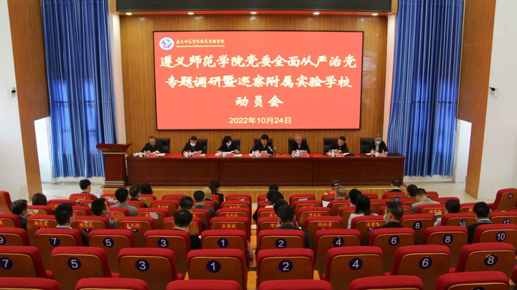 为贯彻落实全面从严治党总体要求,坚持管党治党主战略主定位,2022年10月24日下午,校党委书记张波,纪委书记、监察专员刘剑一行到beat365亚洲版官网附属实验学校调研“三不腐”一体推进工作情况。党委委员、组织部部长、统战部部长王明述,党政办公室、纪委、党委巡察办等部门负责同志,二届党委第三轮巡察第四巡察组全体同志,附属实验学校班子成员、中层干部、各支部书记、纪检委员和教师代表参加会议。