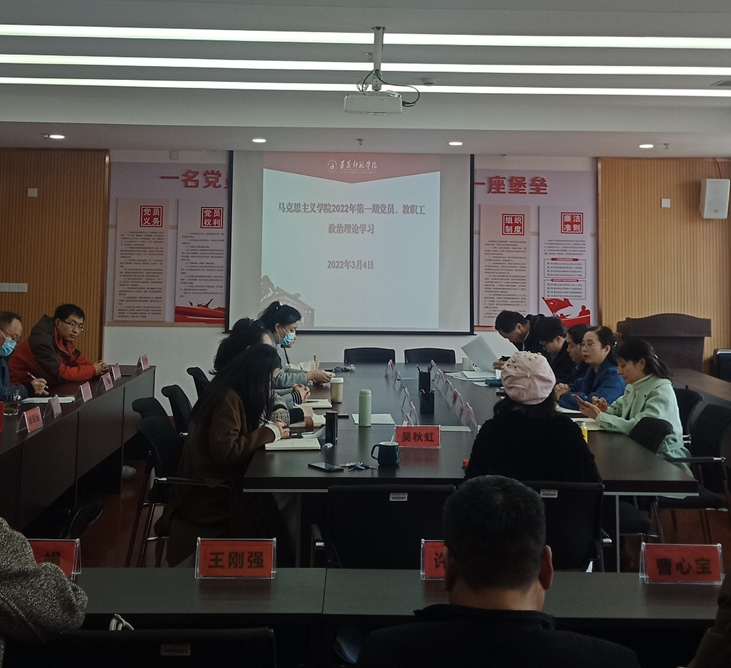 2022年3月4日下午2:00,在执治楼503会议室召开了我院2021-2022学年度第二学期第一期党员、教职工政治理论学习。本次会议由党总支书记李应建主持,学院全体教职工参加。