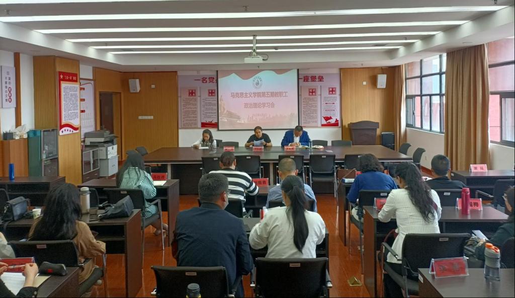 2022年5月6日下午,马克思主义学院在执治楼503会议室召开第五期教职工政治理论学习会。会议由党总支书记李应建主持,全体教职工参加。
