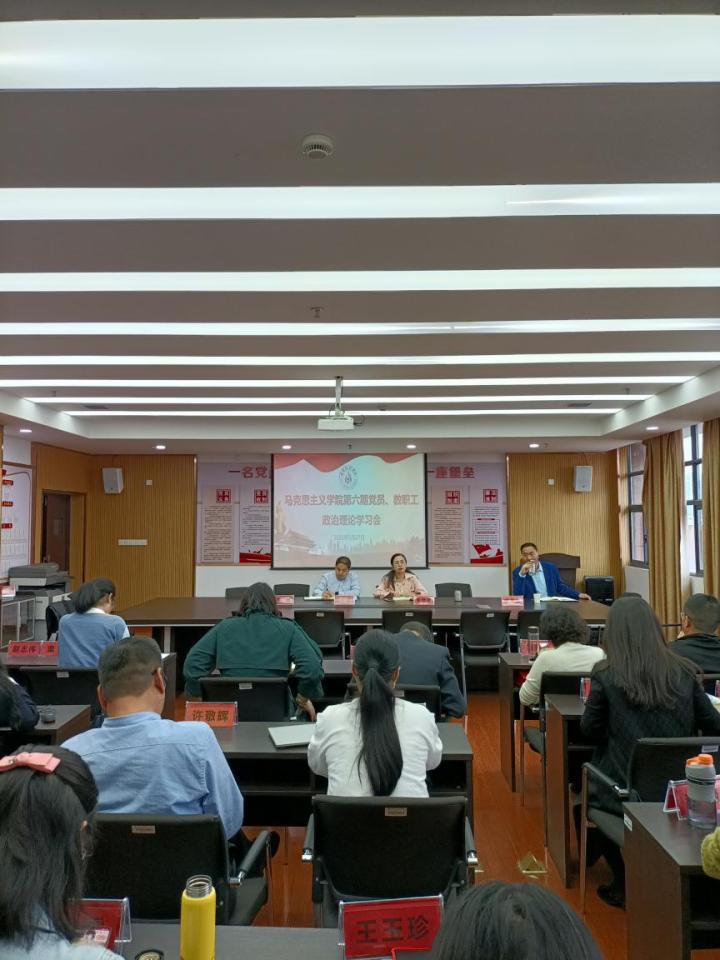 2022年5月27日下午,马克思主义学院在执治楼503会议室召开第六期教职工政治理论学习会。会议由党总支书记李应建主持,全体教职工参加。
