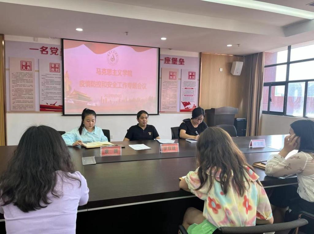 9月6日下午,马克思主义学院在执治楼503会议室召开疫情防控和安全工作专题会议,学院党总支书记李应建主持会议,党总支副书记袁婧,各班主任,各科室负责人参加会议。