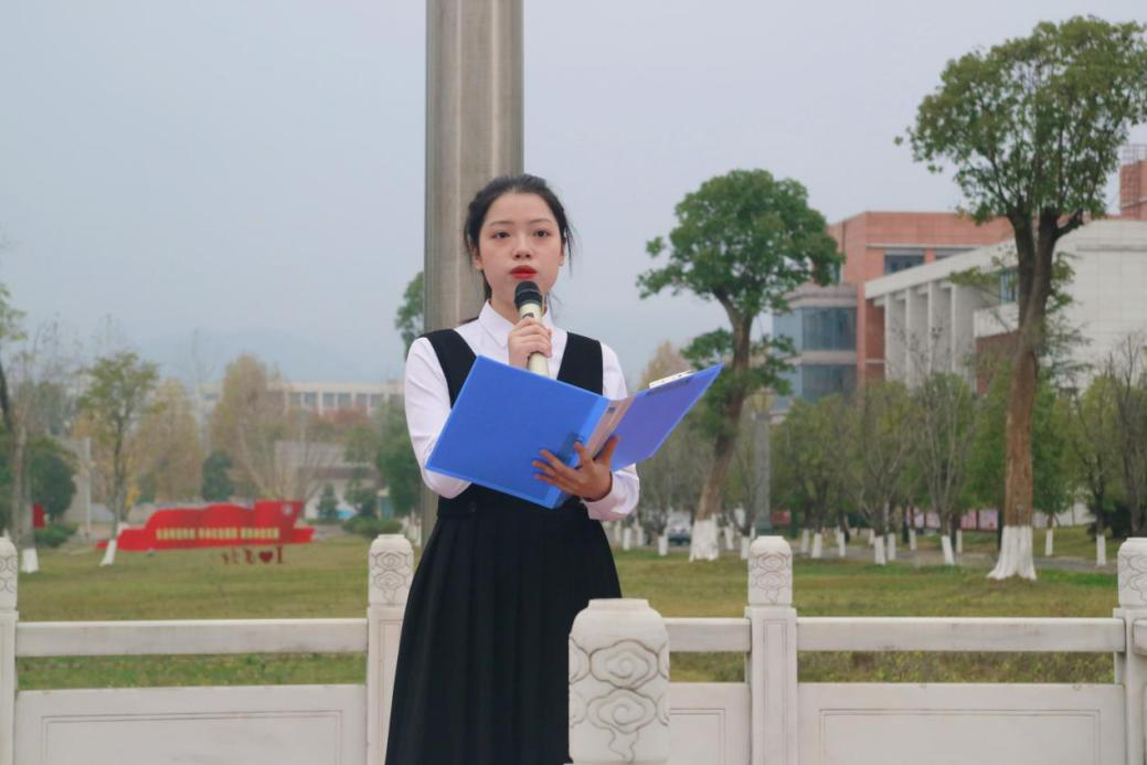 红旗下,2021级学生梁嘉慧代表作了“天渠映丹心”的红色宣讲,讲述了“绝壁天渠,丹心闪耀”的黄大发。讲诉了播州区草王坝村以太阳为伴,以月亮相随,以党同行,与人民同在的新愚公黄大发的感人事迹。