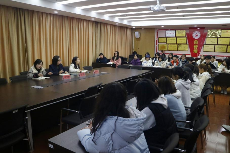 胡文静介绍了就业形势,鼓励同学们强内功、练好本领明确职业目标、制定好职业规划,积极行动,争做领头羊,带领班级共同进步。