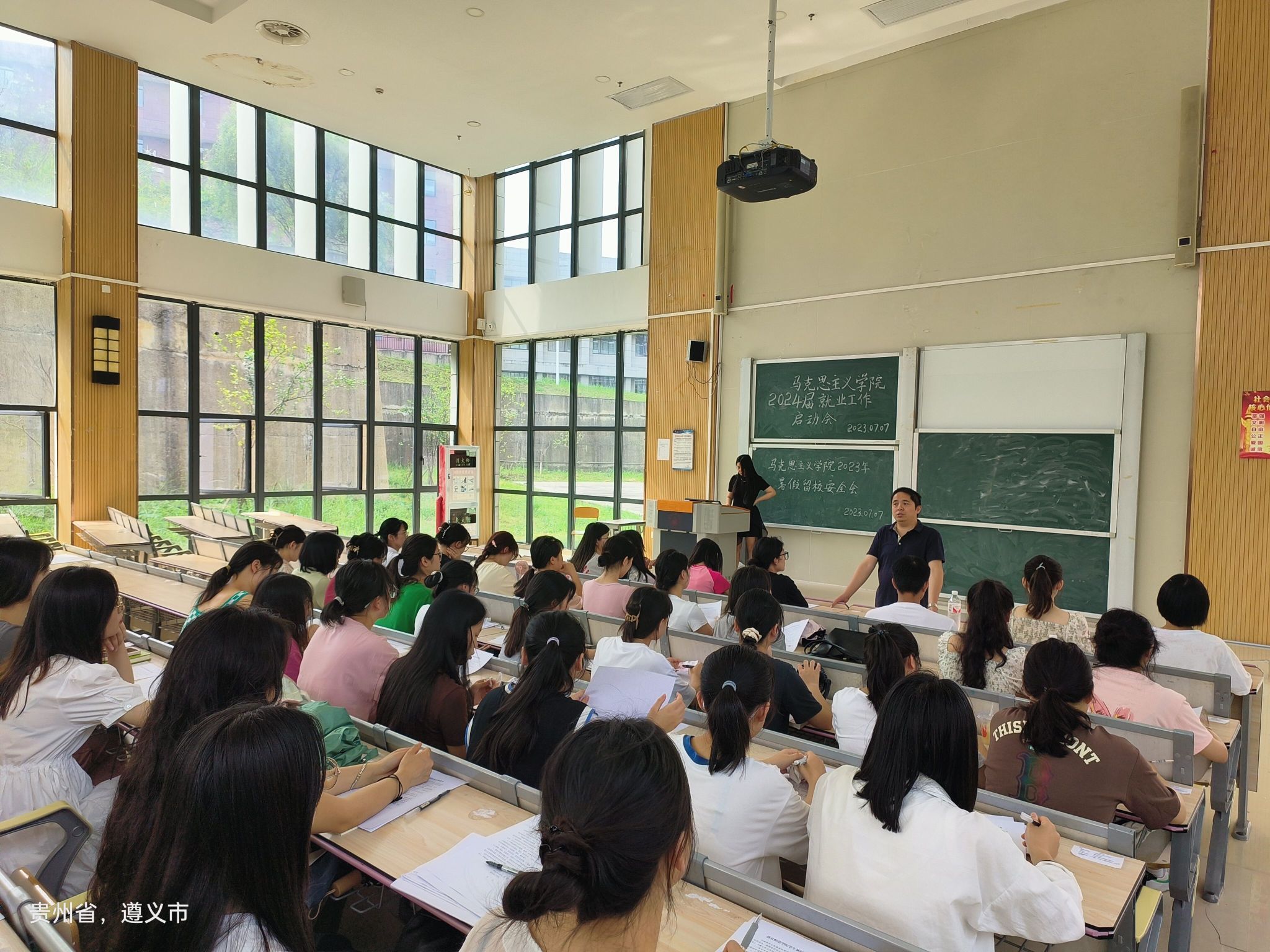 为做好2023年暑期学生留校工作,维护暑期校园正常秩序和安全稳定。马克思主义学院于7月7日上午在执治楼103召开2023年暑期留校学生安全教育大会。参加会议的有党总支书记李应建、副书记袁婧,全体留校学生,会议由学生科副科长陈首君主持。