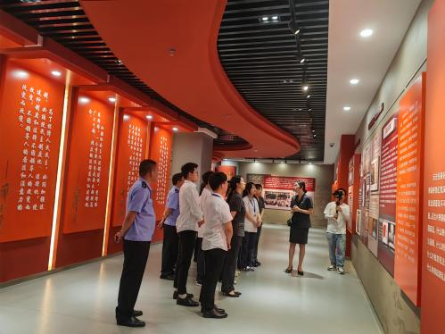 第二站——参观遵义市法治教育政治生活馆、党建工作阵地。遵义市中级人民法院司法干警张涛松同志为大家介绍我国法治建设的历程及遵义市在党的十八大以来取得的重大司法成就。遵义市中级人民法院院长卢飏,遵义市中院法官、全国优秀法官张海波同大家见面交流。