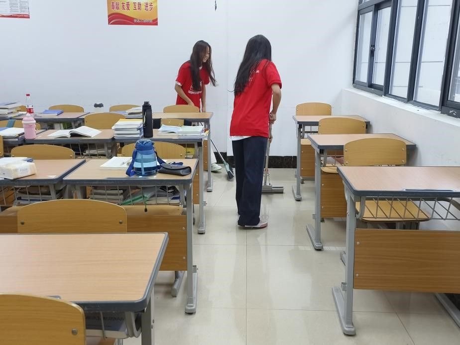 活动现场,同学们分工明确、紧密配合、合作有序、干劲十足,积极投身到清扫教室活动中去。大家都打扫的热火朝天,短短一个多小时,志愿者们便将教室打扫整洁。大家热情洋溢、积极劳动,充分展现了我院青年学子的良好品格。