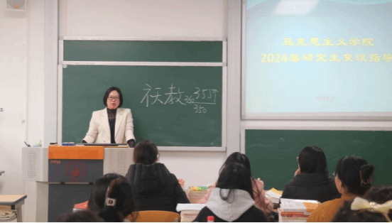 马克思主义学院党总支特别重视2024届毕业生就业工作,并把考研作为高质量就业的一个重要途径。在今年考研初试成绩出来之际,为促进我院学风建设和就业质量提升,学院及时召开了考研情况研讨会和复试培训会,研讨会上,党总支书记李应建综合分析实际情况,从而确定升学目标,精准帮扶指导,提升考研成功率,旨在提高研究生考取率,提升我院高质量就业水平。2024年3月14日下午,学院特邀请beat365亚洲版官网外国语学院马山虎老师在执治楼407教室开展2024届研究生复试指导培训。会议由党总支副书记袁婧主持。