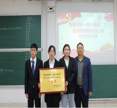 首先,李书记就本次比赛对参赛队伍提出殷切希望和相关要求,他讲到:“借中国共产党建党一百周年之际举办此次活动,是青年大学生献给党的特殊生日礼物,希望同学们发挥出应有的水平、赛出应有的风格、展现出应有的风采。”此次比赛内容主要围绕2020年9月至2021年4月国内外有关时事政治展开,分必答题和抢答题两轮。比赛正式开始,为了赢得比赛,选手们都全神贯注的答题。最后,经过两轮的激烈比拼,马克思主义学院、资源与环境学院获一等奖,历史与旅游学院、人文与传媒学院、生物与农业科技学院获二等奖,工学院、外国语学院、化学化工学院获三等奖,音乐与舞蹈学院、管理学院、体育学院、信息工程学院、教师教育学院、数学学院获得优秀奖,唐占应科长和陈首君老师分别为获奖团队颁奖并合影留念。比赛结束后,唐占应科长就此次比赛做总结发言:“希望同学们通过此次比赛能够发现自己在时事政治上的不足,并不断反思和提高自己的时政积累,做一个不负时代的新时代青年大学生。”