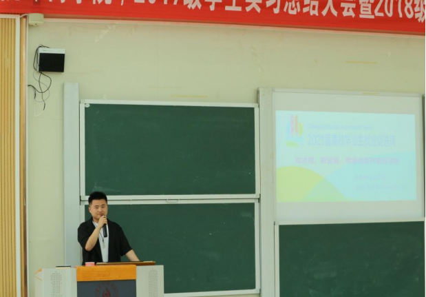 活动伊始,主持人依次介绍到场老师,再由17级考研成功的张国杰学长分享了考研相关的经验和技巧。接着,李志龙、黎朝欢和李玉花三位学长学姐分别分享了考研所必需做的准备和自身所需要的毅力,并讲到考研是一个艰难的过程,需要的不仅仅是扎实的专业知识,更需要持之以恒的毅力和不怕困难的决心。紧接着,成功就业的李宁学长向同学们介绍了他的求职经历和现任岗位,传授了许多面试的经验和技巧,为同学们日后求职做了培训。最后,唐占应科长做总结发言,他分析本科生和研究生未来就业的前景,并指出当前就业存在的问题。