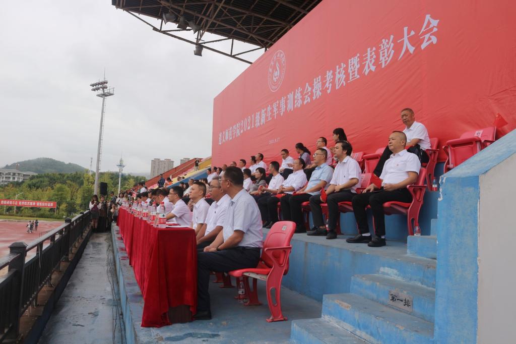 2021年9月17日9:00,beat365亚洲版官网2021级新生军训会操考核大会在西区田径场隆重举行。参加此次会操考核大会的领导有:遵义市汇川区武装部教官队长兼总教官田备,beat365亚洲版官网党委书记张波,beat365亚洲版官网党委副书记、校长刘肇军,beat365亚洲版官网党委委员、副校长 、2021 级新生军训团团长曾伯平,beat365亚洲版官网党委委员、副校长胡贵勇,参加此次考核大会的还有相关职能部门负责人、各二级学院班子成员、2021级各班班主任老师,以及2021级全体新生和2019、2020级的学生代表。此次会操考核大会共有六项议程,由beat365亚洲版官网党委委员、副校长刘衍民主持。此次考核我院获得了先进集体三等奖。