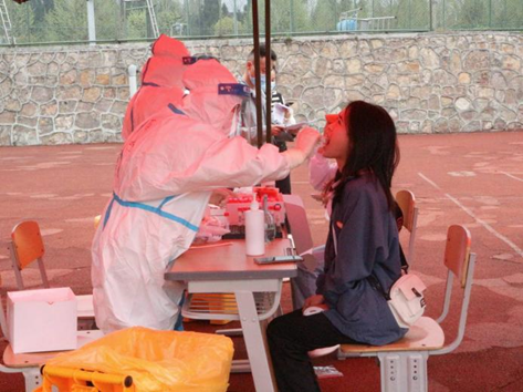 早上八点开始,学院师生分批次依次到达检测点西区运动场,出示健康码、行程码,体温登记后有序排队,在7号检测点进行检测。此次全员核酸检测,学院领导高度重视,各班班干部和志愿者积极协助开展核酸检测工作,协助现场医务人员维持学生秩序、指导学生使用相关程序、提醒各位学生排队拉开间距、指引学生签到等,提高工作效率。在学院老师的组织领导和各班班干积极配合下,全院共计在校10个班级,461名同学,做到了应检尽检,服从安排,保质保量圆满完成任务。