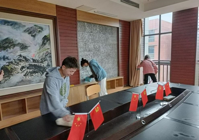 同学们积极参加义务劳动,主动打扫教室及其周边,每一场面试结束后,同学们都积极去清理和打扫,为下一场面试的学长学姐营造干净、整洁的环境。