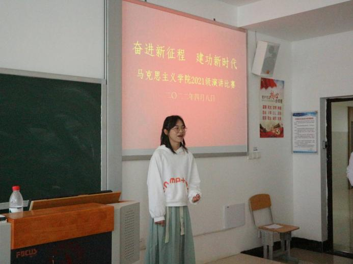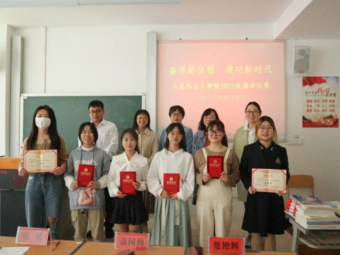 为进一步丰富校园文化生活,锻炼学生的语言表达能力,并选出参加学校演讲比赛的选手,我院于2022年4月8日举办了21级“奋进新征程,建功新时代”的主题演讲比赛。参加此次比赛的六位选手均来自21级,袁婧、聂国梅、叶春芳、冯皎月、楚艳辉五位老师出席并担任评委,现场共有15名观众。