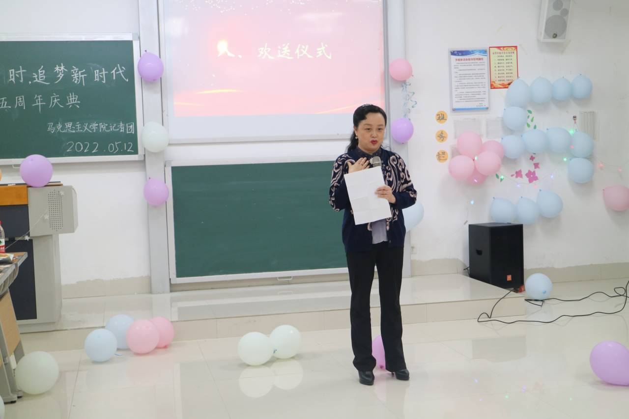 党总支书记李应建向马克思主义学院记者团成立五周年表示祝贺,对记者团五年来的发展和成绩做出了充分肯定。李应建表示,记者团一定要用手中的摄影机、相机拍出遵师人、马院人的风采,要用好手中的笔杆子,传播好声音,弘扬正能量;传承红色基因、讲好红色故事;特别要讲好遵义故事、遵师故事!一马当先,助推马院的高质量发展。