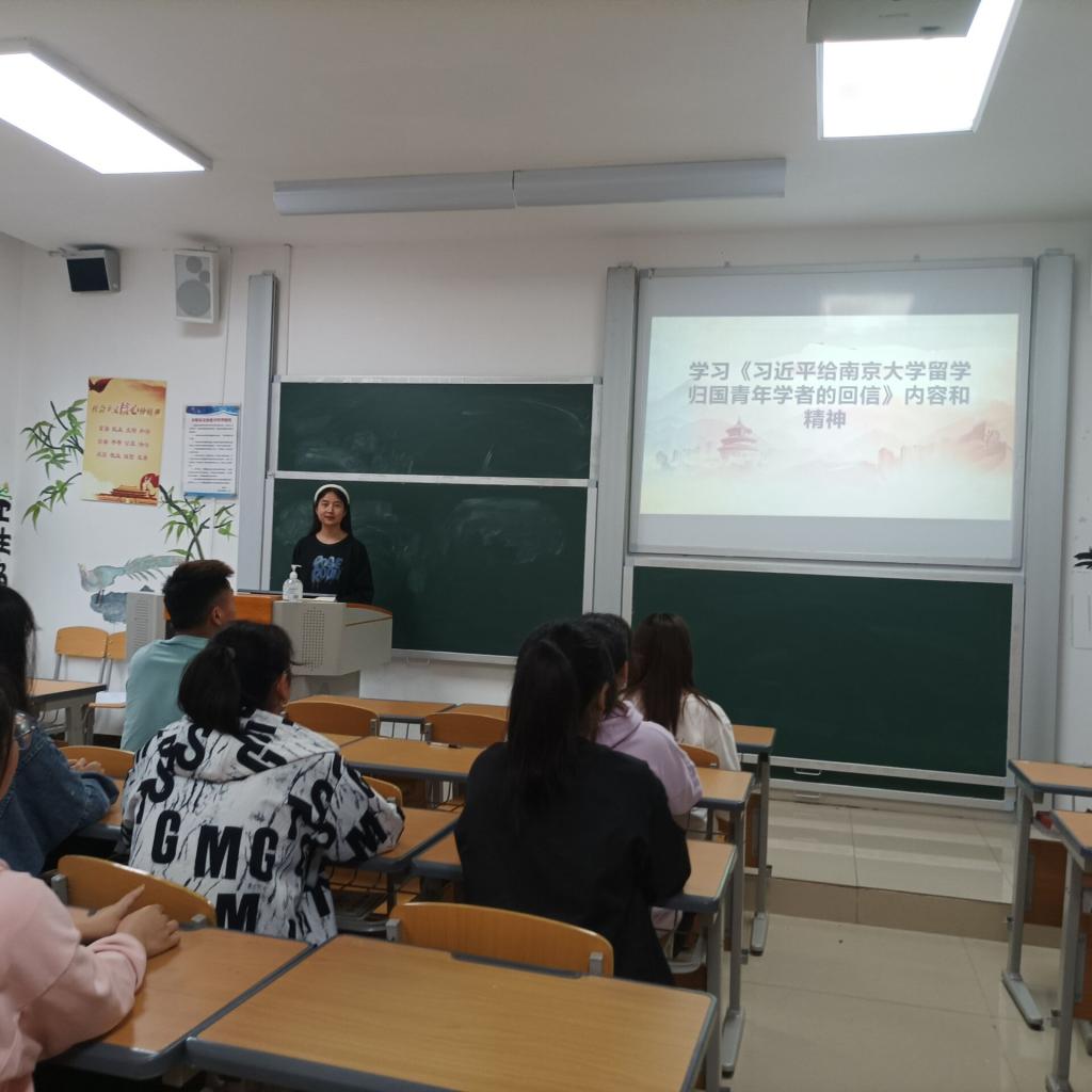 随后,朱荟芳同学与全体参会成员共同朗读习近平总书记的部分回信内容,带我们感受党中央对广大留学人员群体价值的高度重视,对广大留学人员人才作用的高度肯定,呼吁我们,一是要牢记习近平总书记对青年教师成长进步的殷切嘱托,坚持把教师队伍建设作为基础工作,深刻把握青年教师的成长路径和奋斗目标;二是要牢记立德树人的根本任务,充分发挥教师在落实立德树人根本任务中的关键作用,勇担高等教育为党育人、为国育才的历史使命;三是要牢记服务国家的最高追求,切实找准高等学校服务国家的战略途径,在全面建设社会主义现代化国家新征程上,奋力书写新时代高等教育高质量发展的时代篇章。