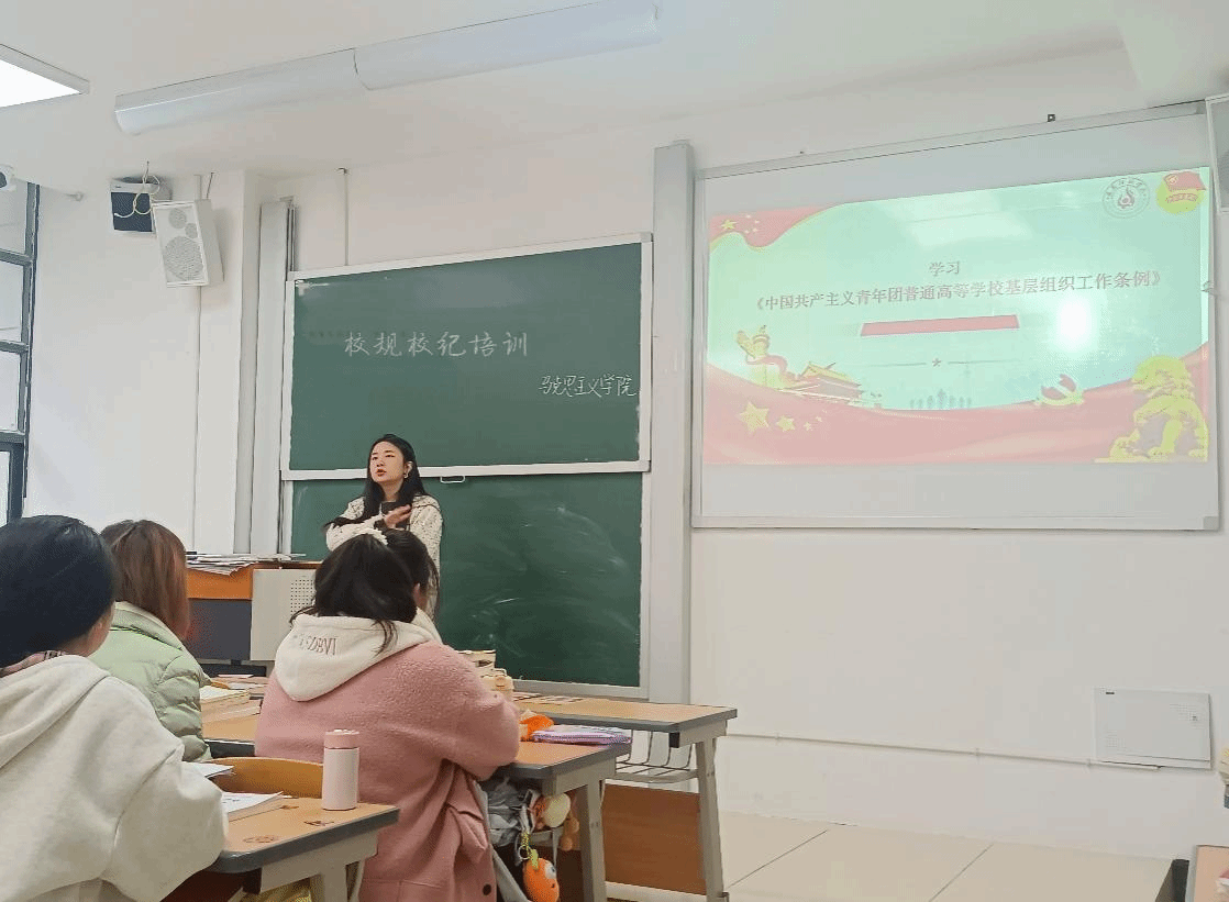 为进一步夯实基层团组织建设,提高团支部的引领力和凝聚力,不断加强学生队伍建设,提高学生干部的综合素质。马克思主义学院团总支于2024年3月22日晚在执治楼103开展校规校纪培训会。学院各团支部委员以及全体学生干部参加了此次会议。