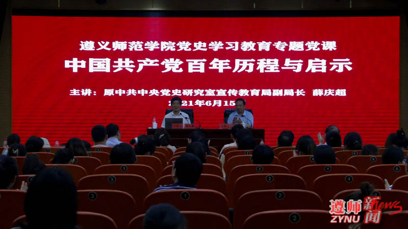 为扎实推进党史学习教育深入开展,6月15日下午,原中共中央党史研究室宣传教育局副局长薛庆超受邀到beat365上题为《中国共产党百年历程与启示》的党课,师生党员代表到场聆听。