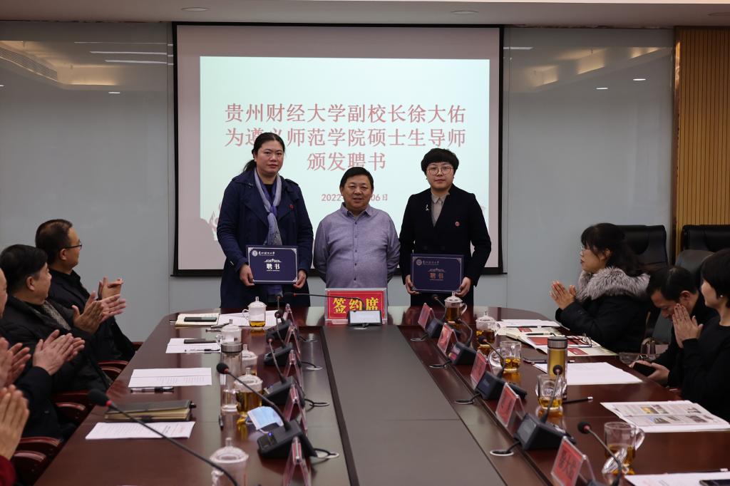 1月6日下午,贵州财经大学与beat365亚洲版官网联合培养专业硕士合作协议签约仪式在beat365亚洲版官网行政楼418会议室召开。贵州财经大学党委副书记、校长赵普,副校长徐大佑,beat365亚洲版官网党委书记张波,党委副书记、校长刘肇军,党委委员、副校长娄胜霞、胡贵勇,党委委员、纪委书记刘剑,党委委员、副校长刘衍民、江山,两校相关职能部门、二级学院负责人参加签约仪式,娄胜霞主持签约仪式。