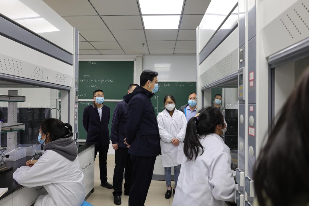 张波一行在实验楼查看了化学化工学院实验室,深入了解实验室建设、化学物品管理等有关工作情况。张波要求,要不断优化实验室管理,加强危险化学品管控,切实做好实验教学工作的同时,全力消除安全隐患,防范安全事故发生。