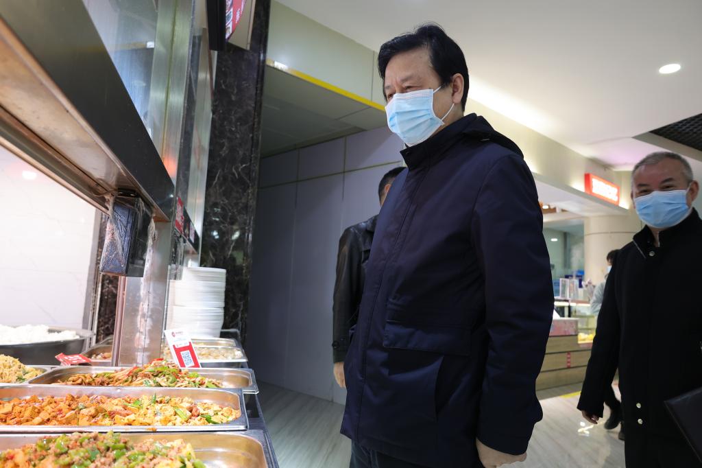 张波一行还到东区食堂,调研疫情防控和食品安全有关工作,仔细查看了食品留样情况。他表示,食品安全重于泰山,要始终坚持为师生服务的宗旨,不断提高食堂管理服务水平,认真落实常态化疫情防控措施,全力做好高品质的餐饮保障与服务。(文/张月桃 图/梅世丽)