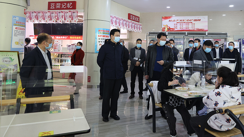 4月2日,学校党委书记张波带队检查疫情防控工作。党委副书记曾伯平,副校长胡贵勇,纪委书记刘剑,副校长张鹏,党政办公室、纪委、党委宣传部、党委学生工作部、后勤管理处、保卫处、一桓物业相关负责同志参加检查。