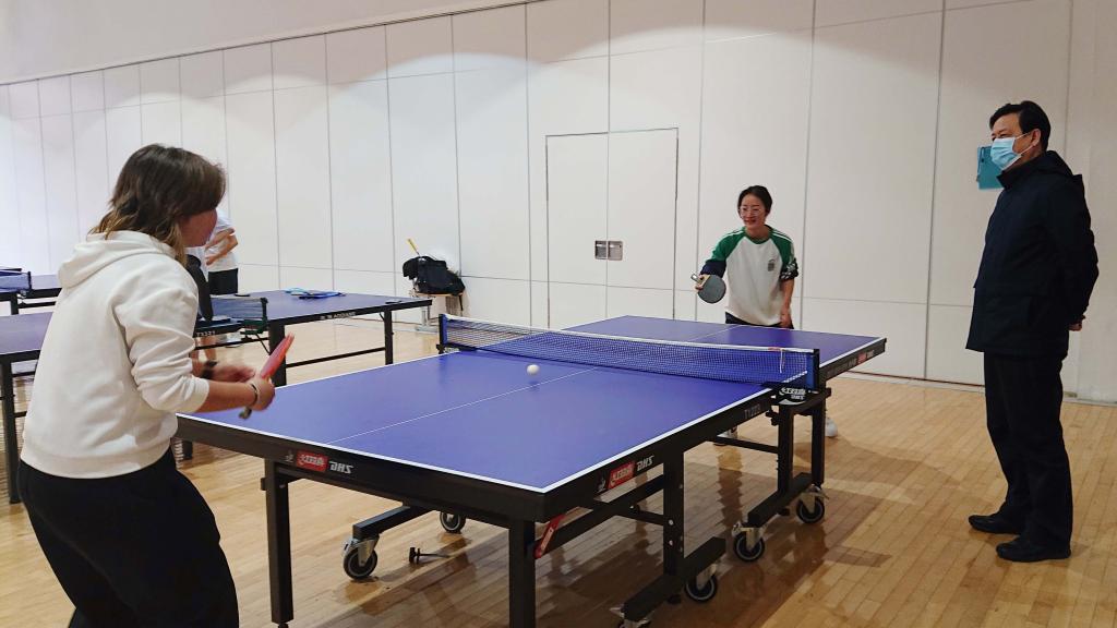 “平时经常打球吗?”“有没有老师对你们进行指导?”……张波走进体育馆,了解了学生使用篮球馆、乒乓球馆等的情况,并与打乒乓球的学生进行交流,了解他们日常体育运动情况,听取他们对体育设施的意见建议,鼓励他们积极参与体育锻炼,练就健康体魄。张波要求,要进一步完善体育设施建设,提高体育场馆使用率,为师生提供良好的体育服务。