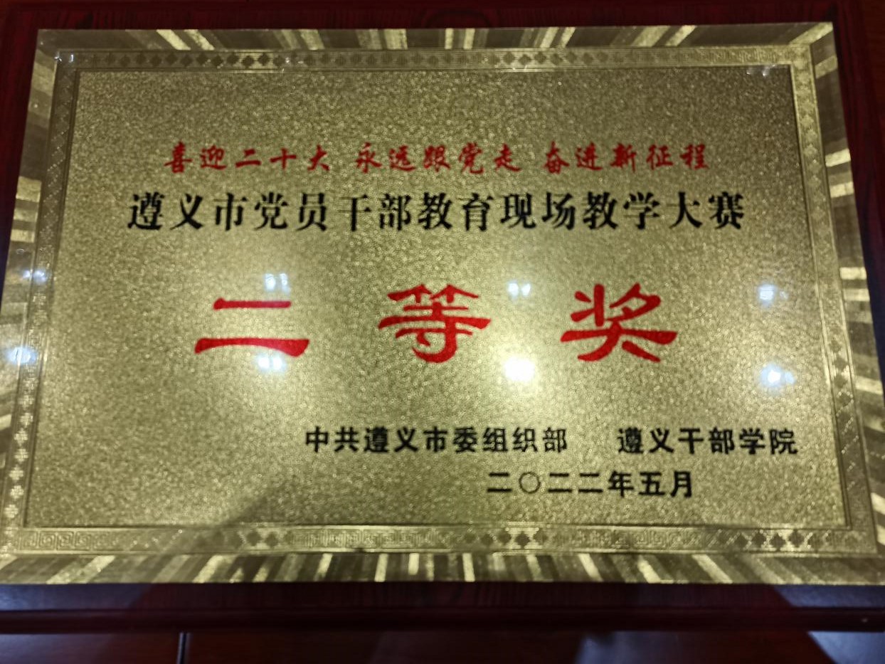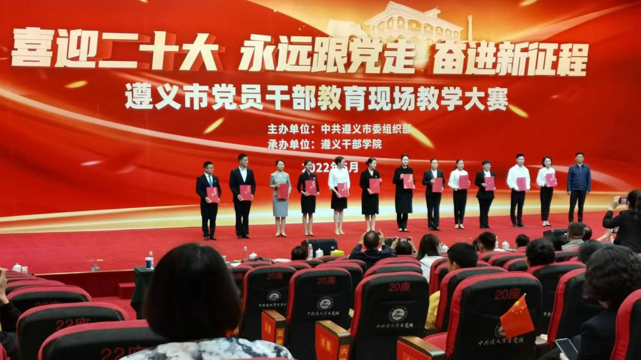 在5月18日下午结束的遵义市党员干部教育现场教学大赛中,beat365亚洲版官网代表队夺得团体二等奖(第二名),参赛教师陈媛媛取得第6名并获优秀奖,参赛教师于天、周选州并列第17名。