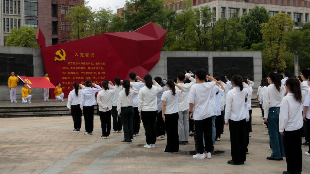 入党宣誓仪式在全体人员共唱《没有共产党就没有新中国》后落下帷幕。(文/胡佳音 图/吴长谕)