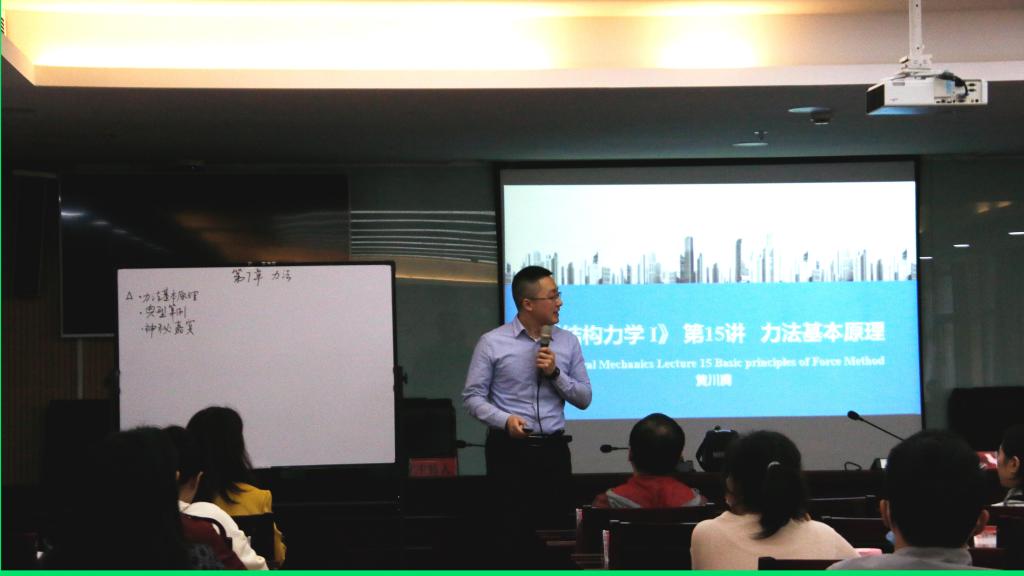 黄川腾向大家讲解了《力法基本原理》。他表示,教无定法,最好的课堂不在赛场而在日常、不在讲座而在讲堂,我们在教学中切忌机械“八股”教学,切忌教学活动“大拼盘”;贵在得法,教学要架起人与人之间沟通交流的桥梁;教学有法,要让知识和情感、认知和体验、目标驱动和任务驱动相结合,要向新型学习平台学习如何快速吸引学生的注意力和持续关注,打造学生愿意停留的课堂。