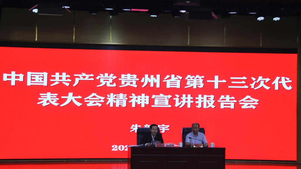 朱新宇作题为《深入学习贯彻贵州省第十三次党代会精神,接续奋斗再创贵州经济发展新辉煌》的宣讲报告。他表示,省第十三次党代会是一次凝聚人心、鼓舞士气、求实创新、团结奋进的大会。大会高举习近平新时代中国特色社会主义思想的伟大旗帜,坚持以高质量发展统揽全局,开启了贵州跨越发展的新征程。