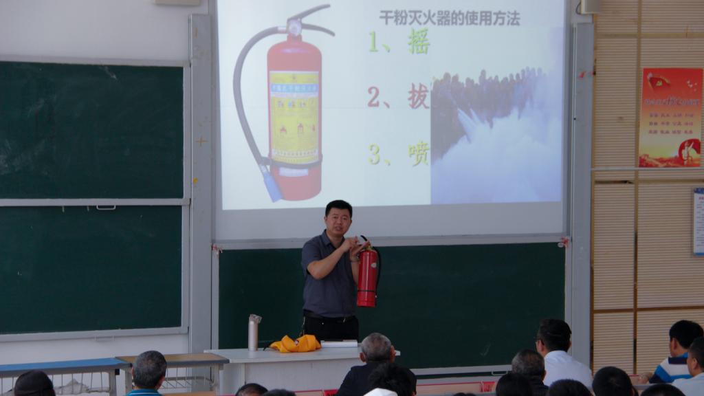培训中,袁强结合新近发生的浙江火灾事故,由浅入深地向在场师生分析了引发火灾的常见原因,并对消防器材使用、灭火方法及注意事项、如何及时发现火险隐患、应急自救常识等进行详细讲解,师生们认真聆听,受益匪浅。