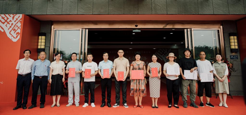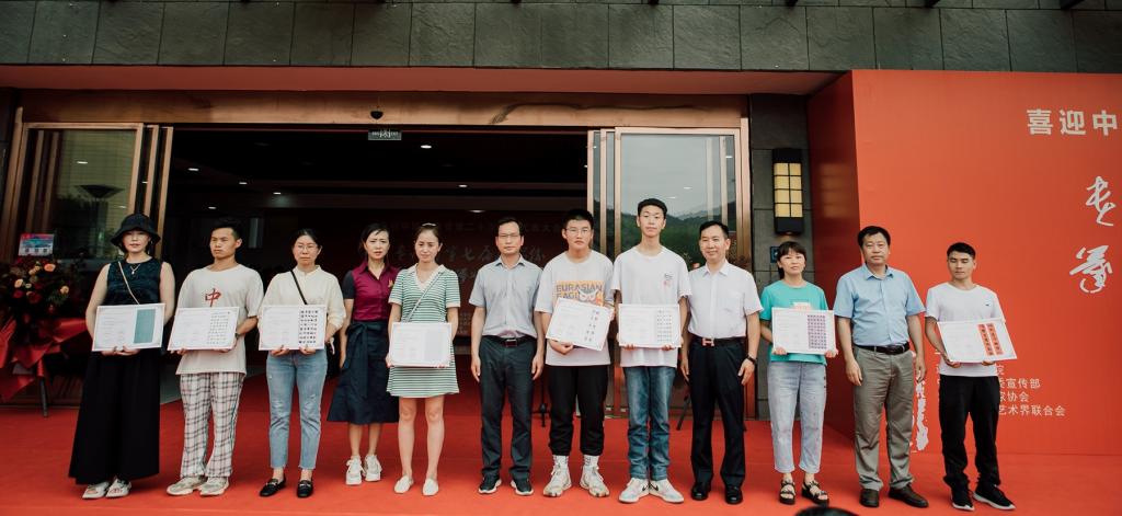 遵义市文联党组书记、主席谢国蕾宣布贵州省第七届“恒安杯”篆书隶书篆刻艺术大展获奖名单。与会领导、嘉宾为获奖者代表颁奖。