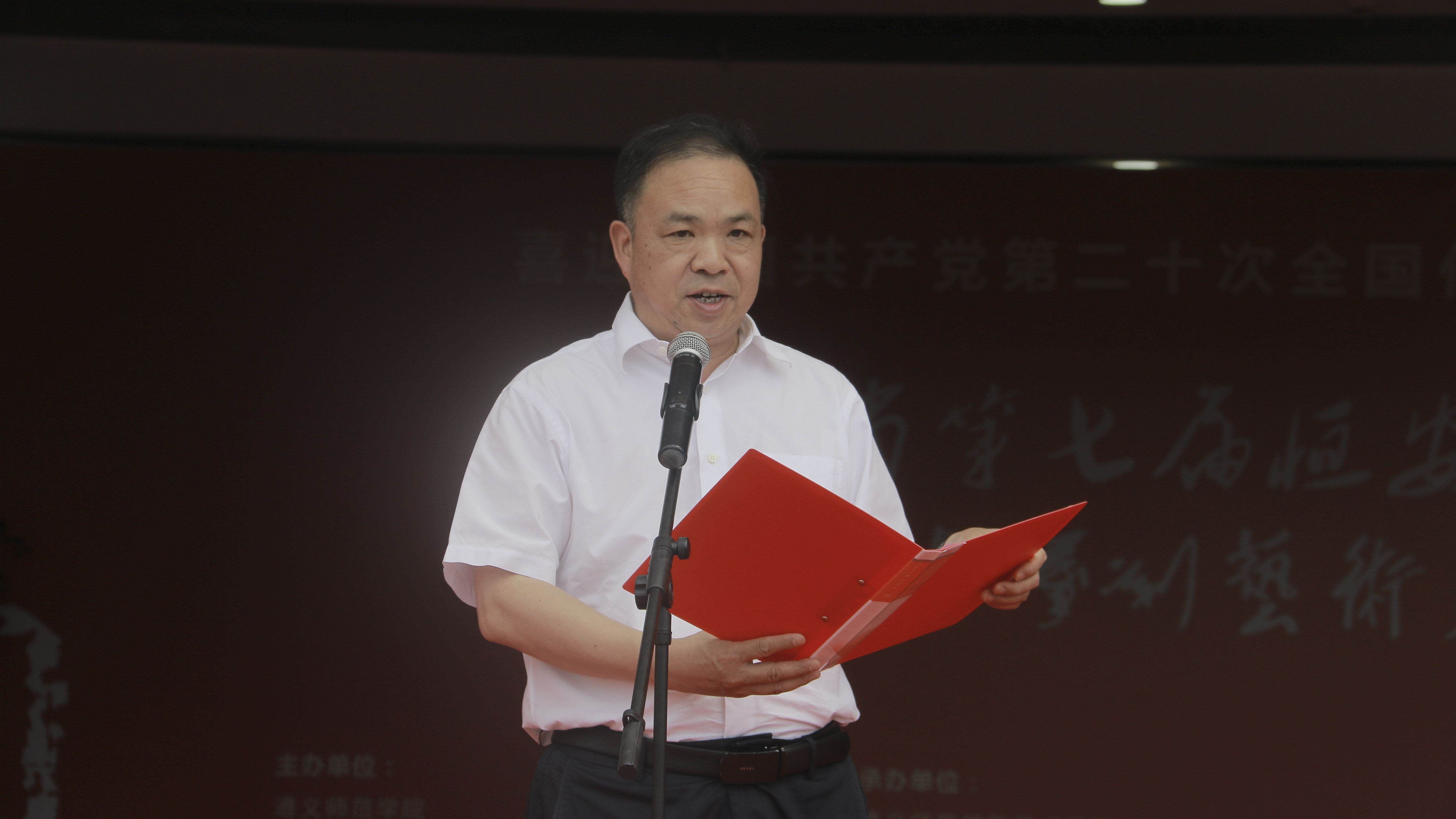 beat365亚洲版官网党委副书记、校长刘肇军代表学校党政和全体师生,对各位嘉宾的到来表示欢迎,对活动的举办表示祝贺。他说道,beat365亚洲版官网作为一所办学历史悠久,红色印记鲜明的百年学府,长期致力中华优秀传统文化的传承与弘扬。希望通过举办此次活动,彰显中华文明之美,促进各地文化艺术交流,培养更多优秀文艺人才,产生良好社会效应,增强遵义乃至贵州的艺术影响力;希望学校师生不断提升文化素养,从中汲取精神力量,进一步增强文化自信,做中华优秀传统文化的忠实继承者、弘扬者和建设者。
