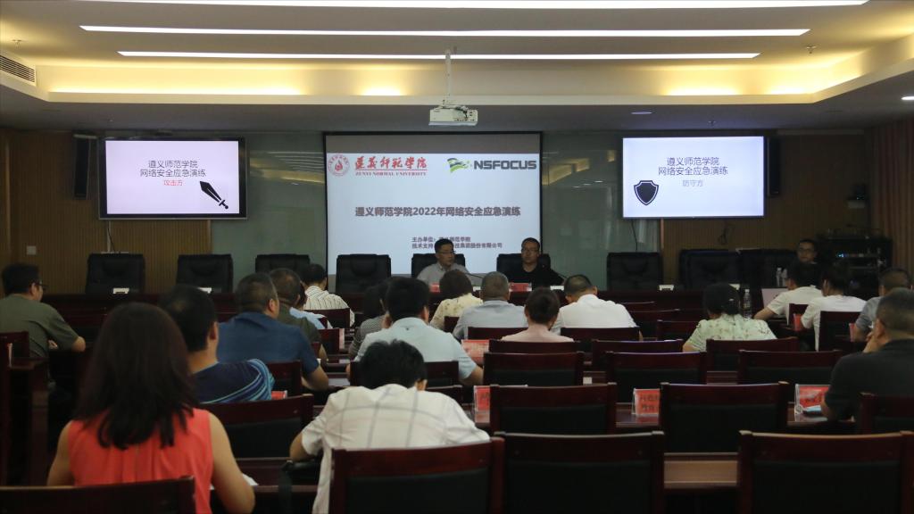 7月8日下午,学校在行政楼214会议室开展2022年网络安全应急演练。学校党委委员、宣传部部长王春华受党委委员、副校长刘衍民委托主持会议,各二级单位主要负责人,网络信息与现代教育技术管理中心全体人员等参加。