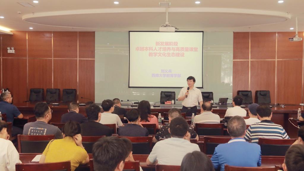 15日上午,西南大学教授刘义兵作题为《新发展阶段卓越本科人才培养与高质量课堂教学文化生态建设》的讲座。