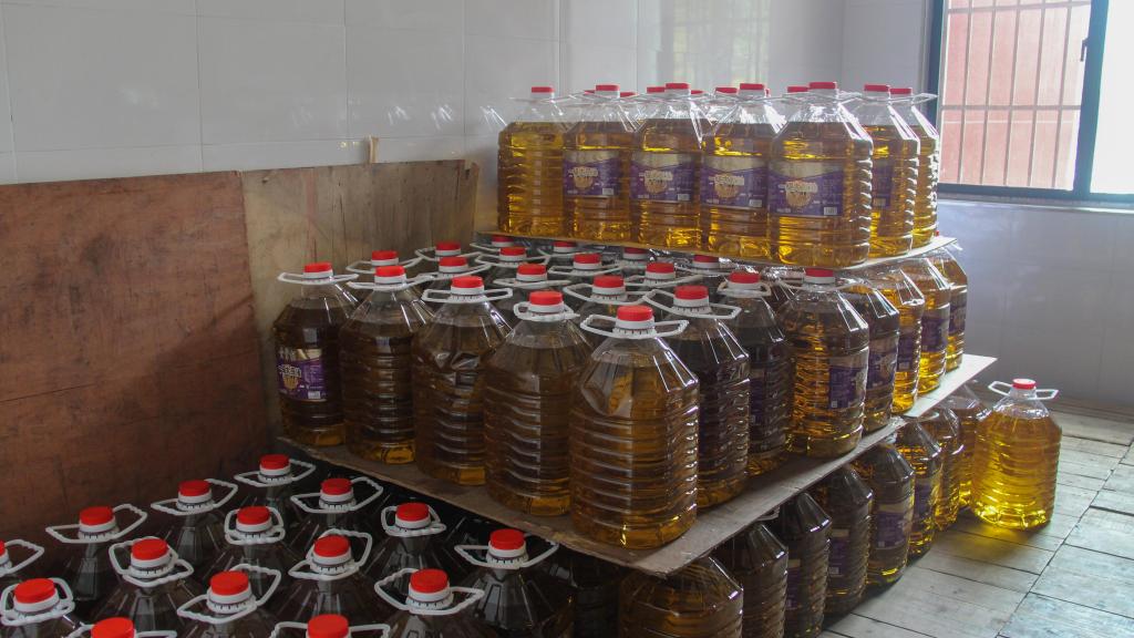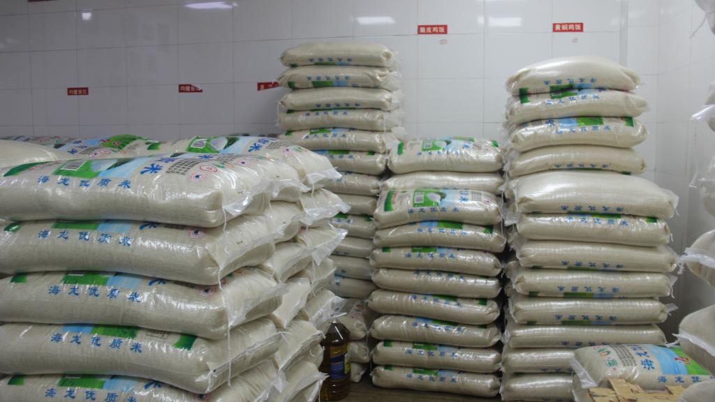 14日,校媒记者走访了食堂库房。粮油米面、一次性就餐用具等储备齐全、数量充足,能够满足留校师生的就餐需求。