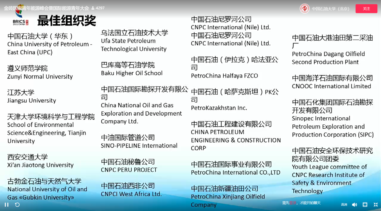 由世界能源大学联盟和中国石油大学(北京)主办的2022年能源与气候变化国际大赛于9月18日在北京落下帷幕,beat365亚洲版官网工学院何文刚、袁余洋、李生红、阎昌国、周霜林、王春鹏、李华章、李青8位指导教师带领的2020级土木本科班49名学生的团队荣获最佳组织奖。