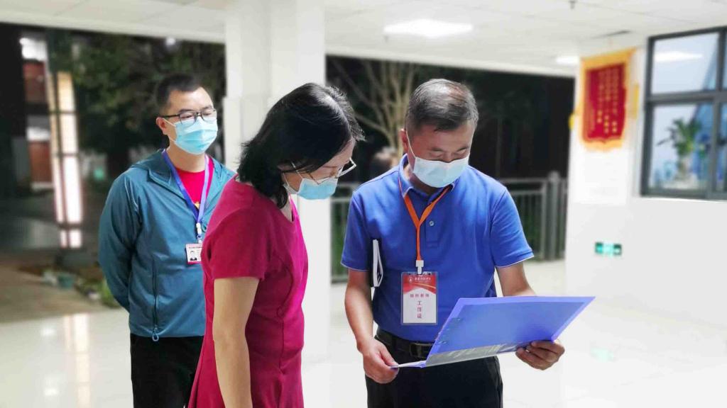 白天,娄胜霞一行来到校园主大门,查看进出人员落实“一扫四查”情况,叮嘱值班干部和门卫务必守好“校门关”,加强对进出校门的人员和物资的检查、消毒消杀工作。在西区学生宿舍,娄胜霞先后检查了翰雅楼、桐雅楼、弈雅楼、绘雅楼、茗雅楼,查看学生宿舍网格化管理情况,通过查阅值班表、实地查看等方式了解学生宿舍管理情况。在东区运动场核酸检测现场,娄胜霞检查了常态化核酸检测情况,现场秩序井然,各项工作有条不紊。在东区食堂入口处,娄胜霞着重向值班干部了解进出食堂人员扫场所码和佩戴口罩情况,叮嘱值班干部加强监督,认真落实重点部位疫情防控措施。