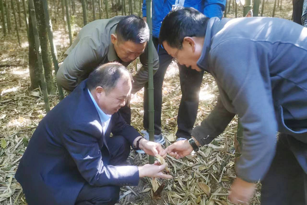 在高山村,刘肇军先深入方竹笋基地,详细了解方竹笋的长势和改造、方竹笋采收和加工及森林防火等工作,与方竹笋产业大户进行面对面交流,然后查看了近年来学校支持帮扶产业路、机耕道的建设和管理维护情况。