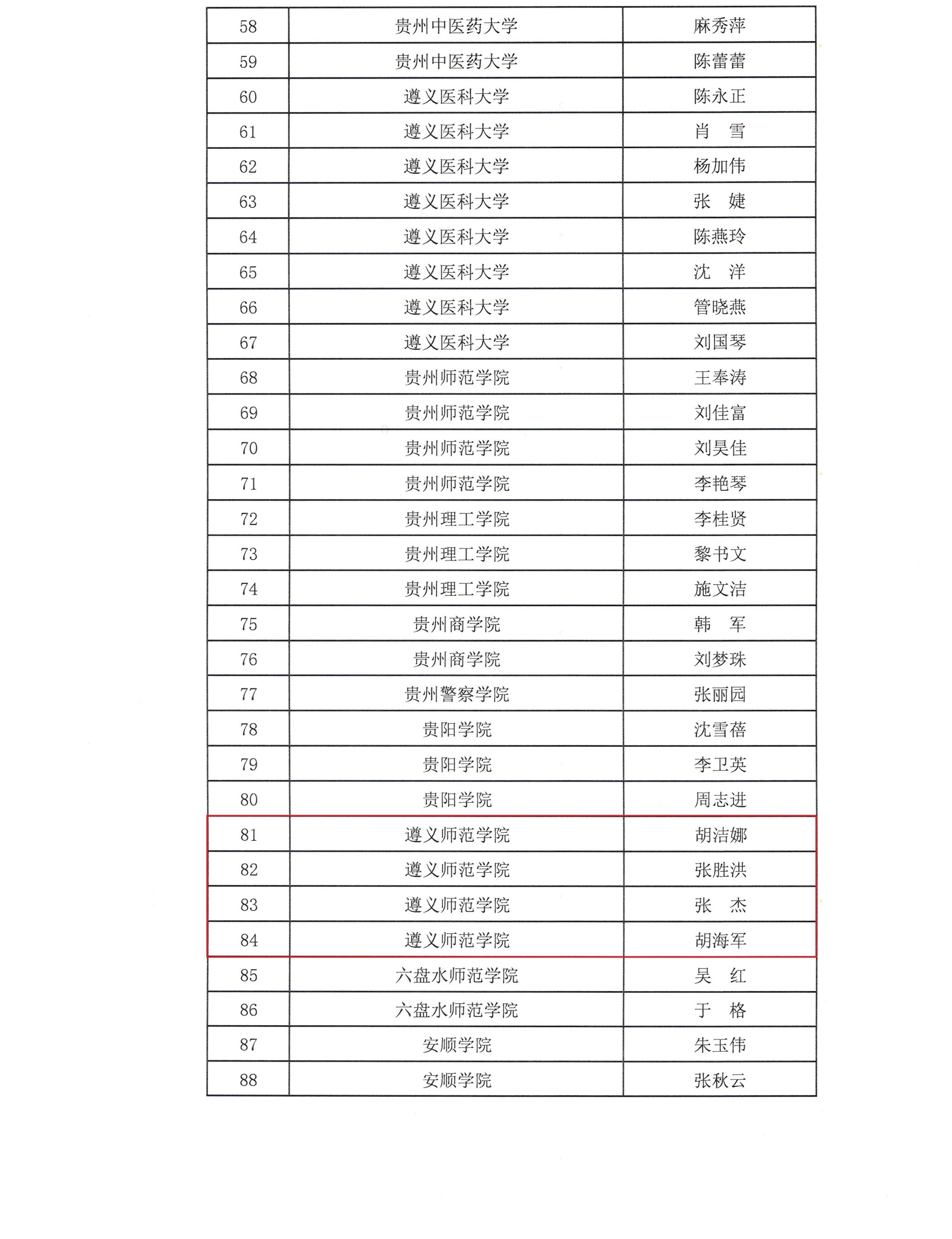 12月30日,贵州省教育厅公布2023年贵州省普通本科高校“金师”(教学名师)名单,beat365亚洲版官网教师胡洁娜、张胜洪、张杰、胡海军入选。