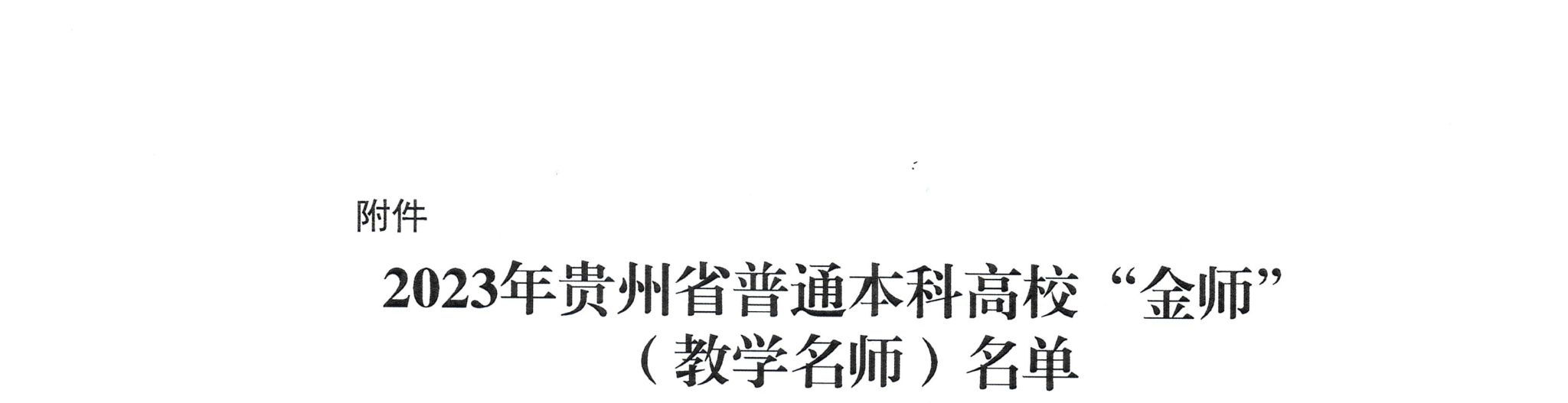 为深入贯彻习近平总书记关于教育的重要论述,贯彻落实全国教育大会、新时代全国高等学校本科教育工作会议及全省教育大会精神,根据《贵州省普通本科高校“金师”(教学名师)评选实施方案》和《省教育厅关于推荐2023年贵州省普通本科高校“金师”(教学名师)候选人的通知》有关要求,经高校推荐、专家评审、网上公示、省教育厅党组会议审议,确定102名教师为贵州省普通本科高校“金师”(教学名师)。