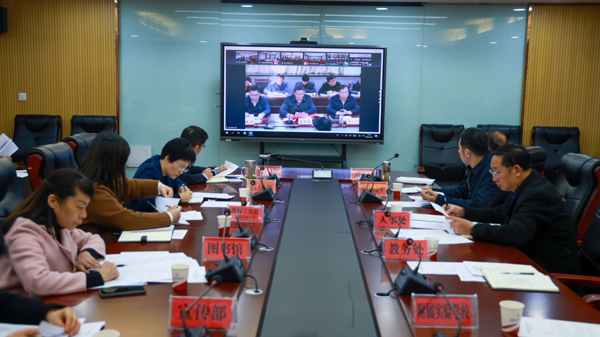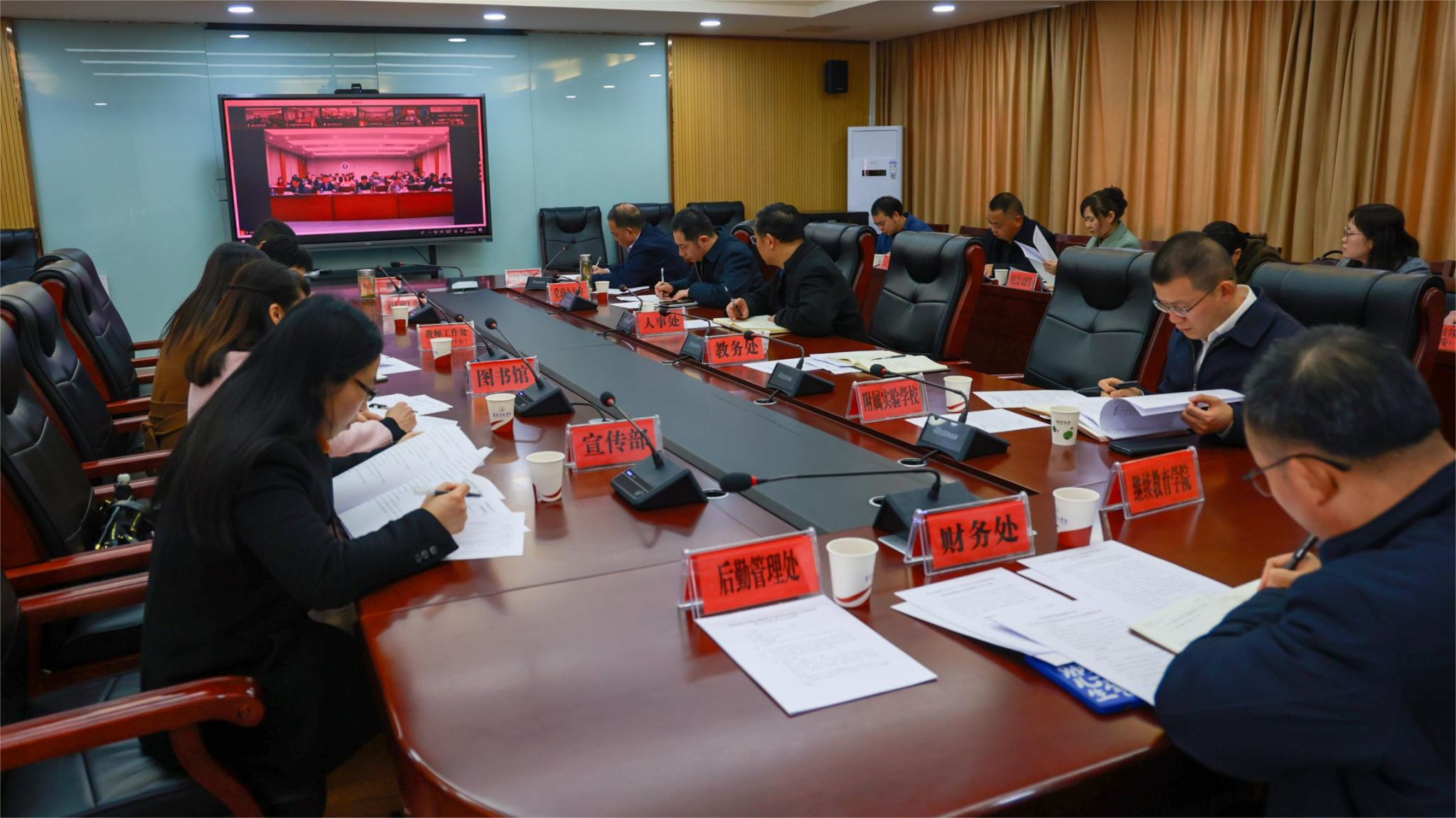 beat365亚洲版官网校长刘肇军,副校长张鹏,党政办公室、组织部、宣传部、人事处、教师工作处、教务处、财务处、后勤管理处、各二级学院、图书馆、附属实验学校主要负责人等参加会议。(文/唐家永 图/骆艳琦)