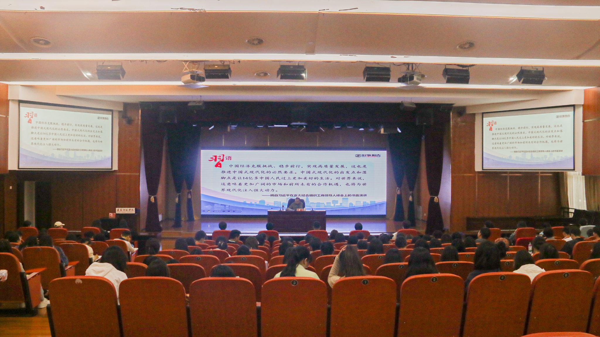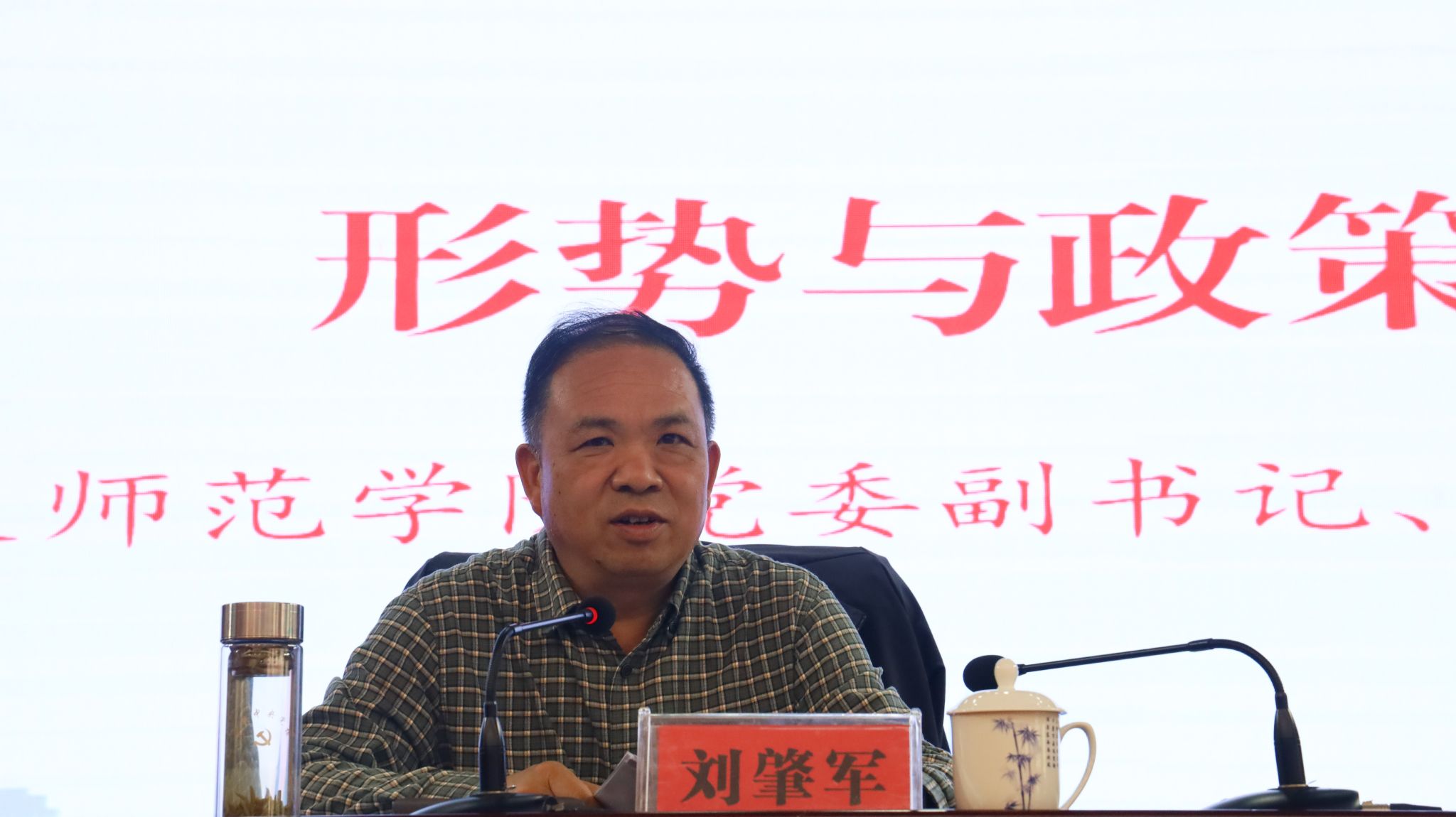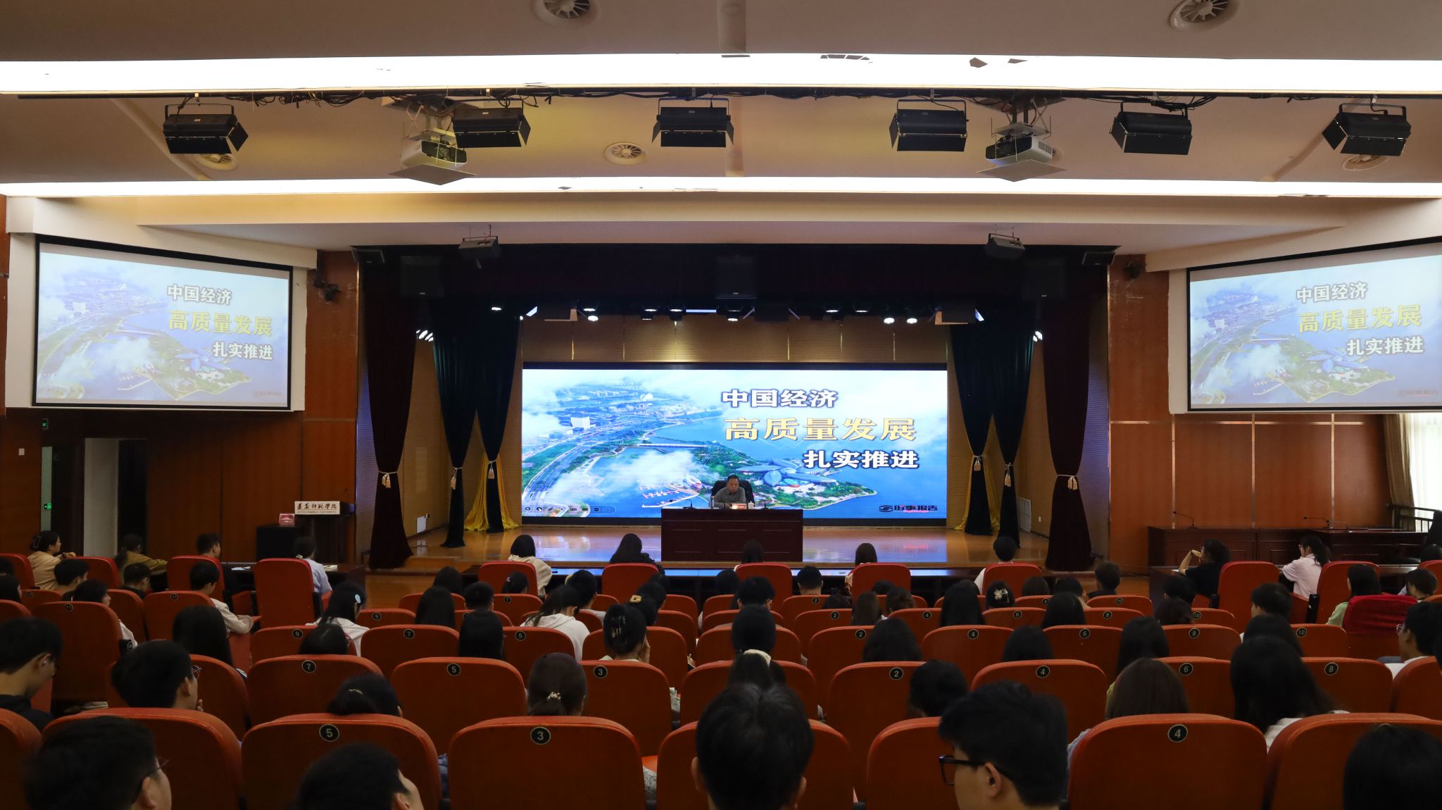 5月16日,刘肇军为21级播音本科班、小教本科(1)(2)班、应心本科班学生讲授了题为《中国经济高质量发展扎实推进》的思政课。