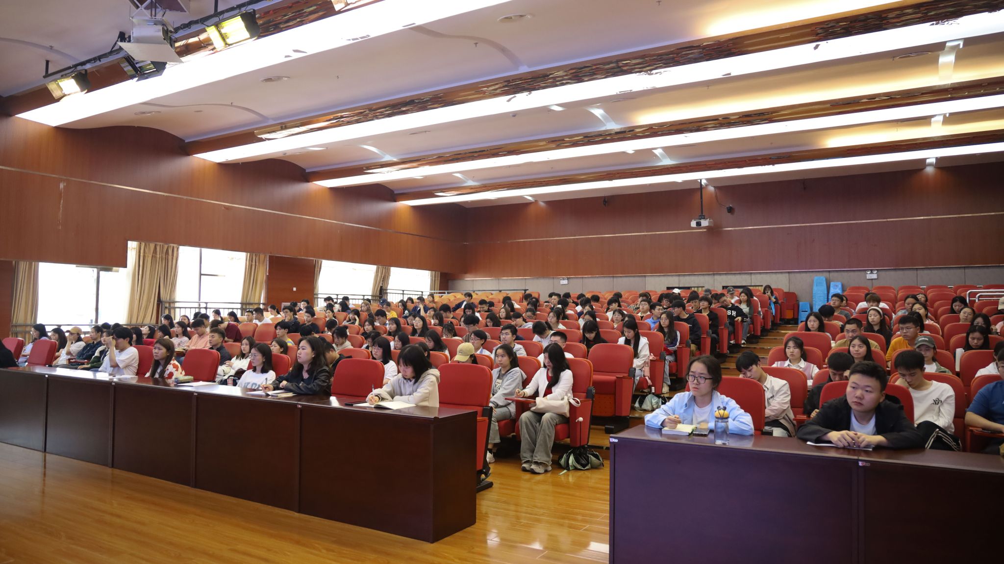 5月15日下午,学校党委副书记、校长刘肇军在学术交流中心报告厅讲授题为《中国经济高质量发展扎实推进》的思政课,2021级环境本科(1)班、(2)班、(3)班,小教本科(1)班、(2)班,音乐本科(2)班,播音本科班,应心本科班学生到场聆听。