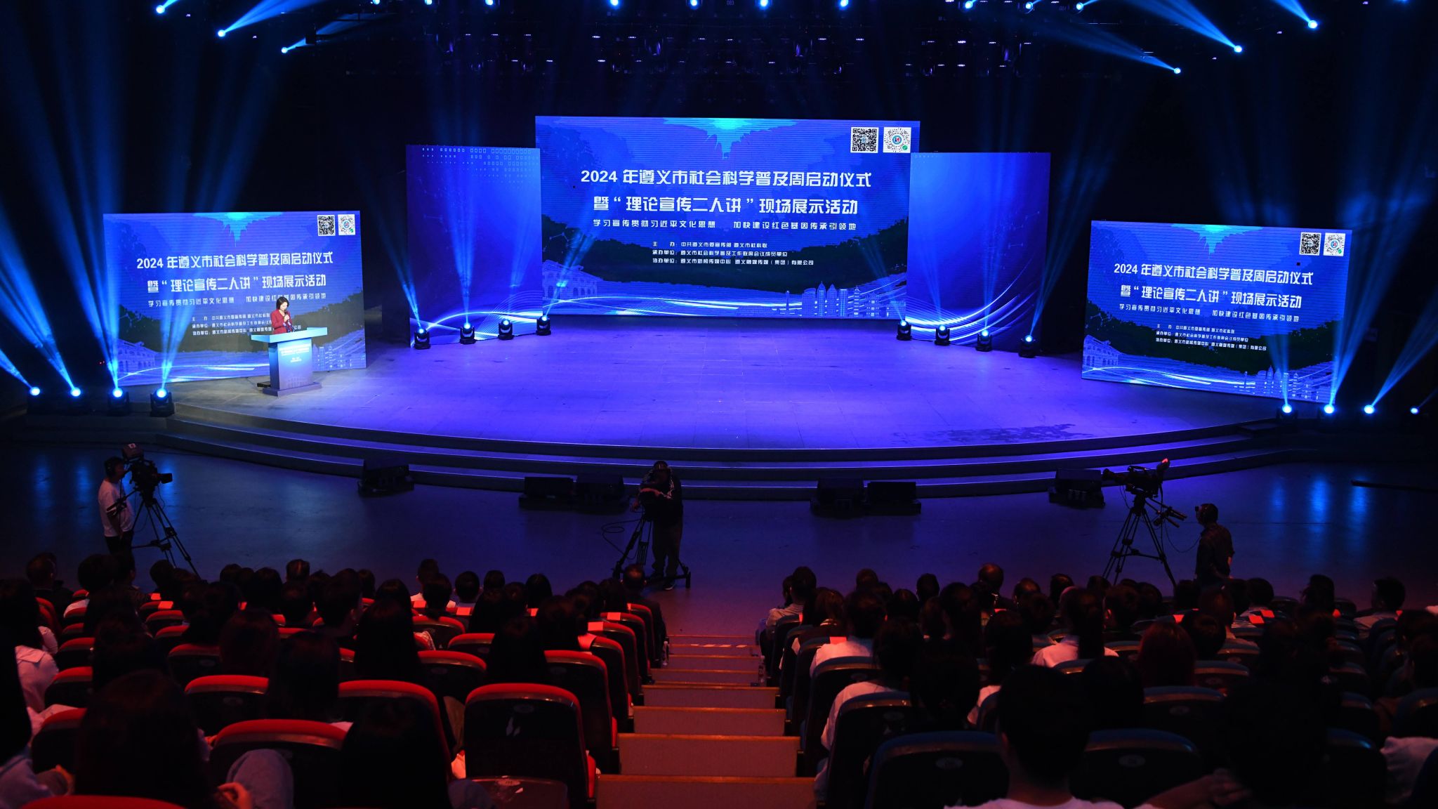 5月21日,2024年遵义市社会科学普及周启动仪式暨“理论宣传二人讲”现场展示活动在遵义市广电中心一楼演播大厅举行。
