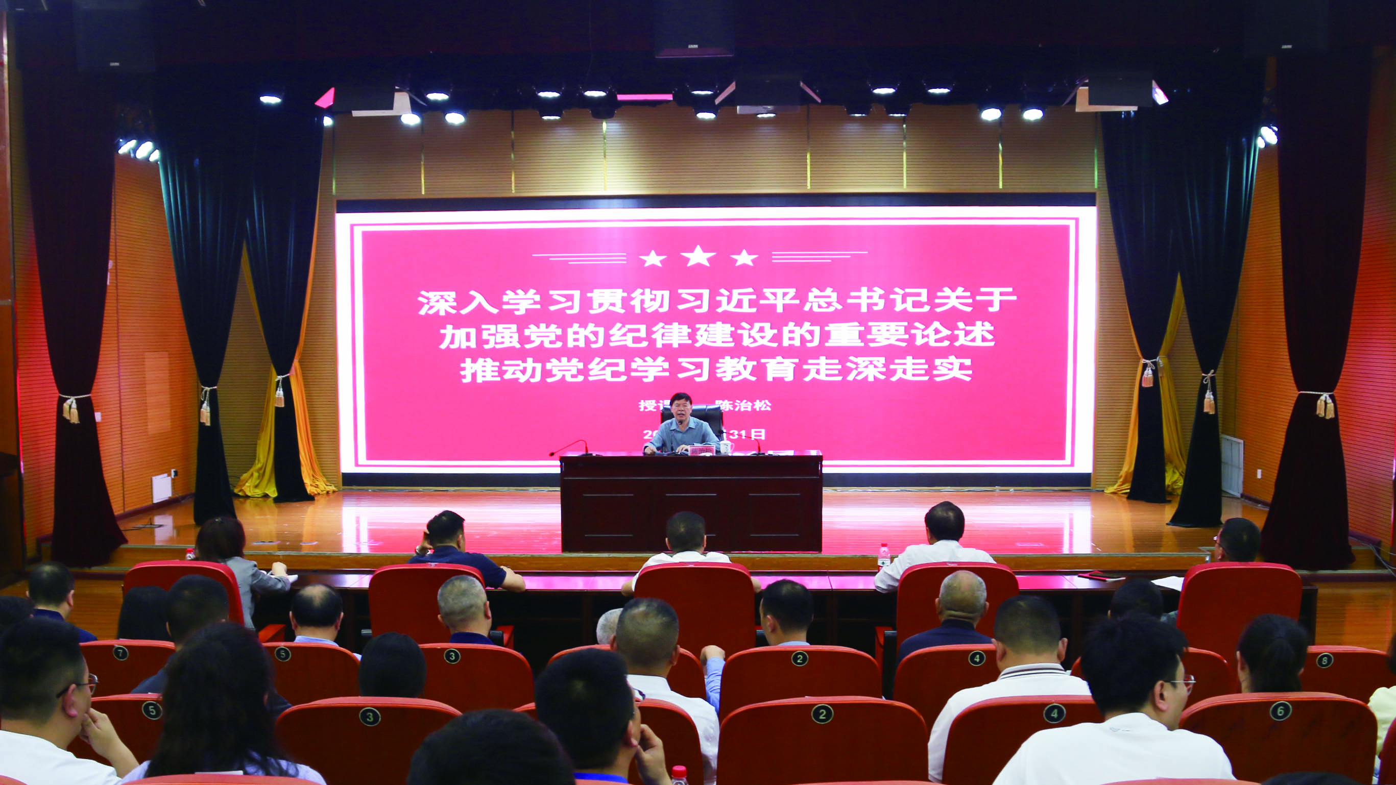 5月31日,学校党委书记陈治松围绕“深入学习贯彻习近平总书记关于加强党的纪律建设的重要论述,推动党纪学习教育走深走实”上专题党课。各基层党委(党总支)书记,各党群、行政、教辅、科研机构党组织书记,各教工、学生党支部书记;党政办公室党支部、马克思主义学院教工第一党支部全体党员聆听。