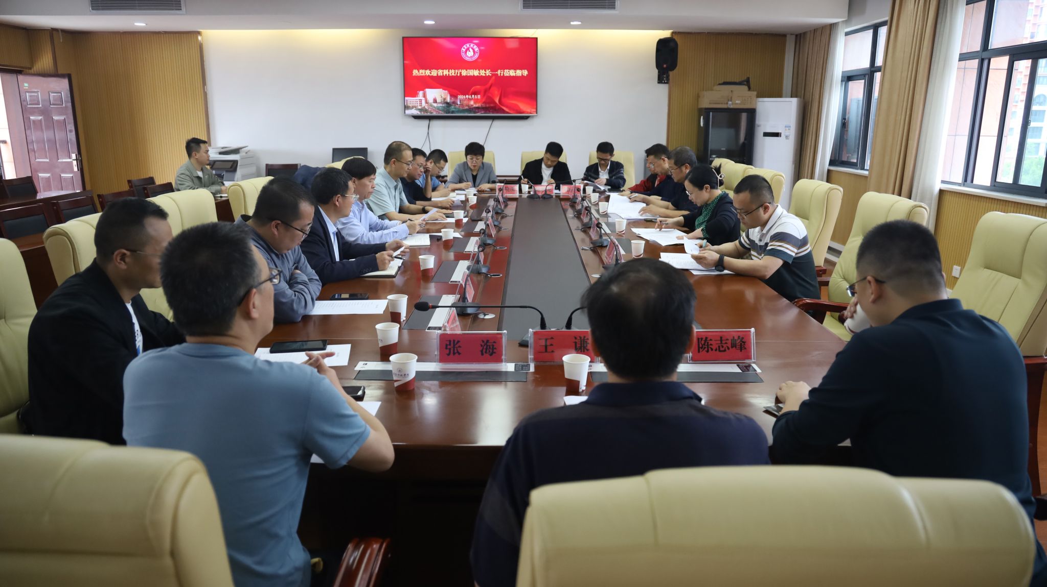 6月5日,省科技厅创新平台管理处处长徐国敏一行到beat365亚洲版官网大学科技园调研人才团队和平台建设情况、学校与遵义高新技术产业开发区共建科技创新平台情况。