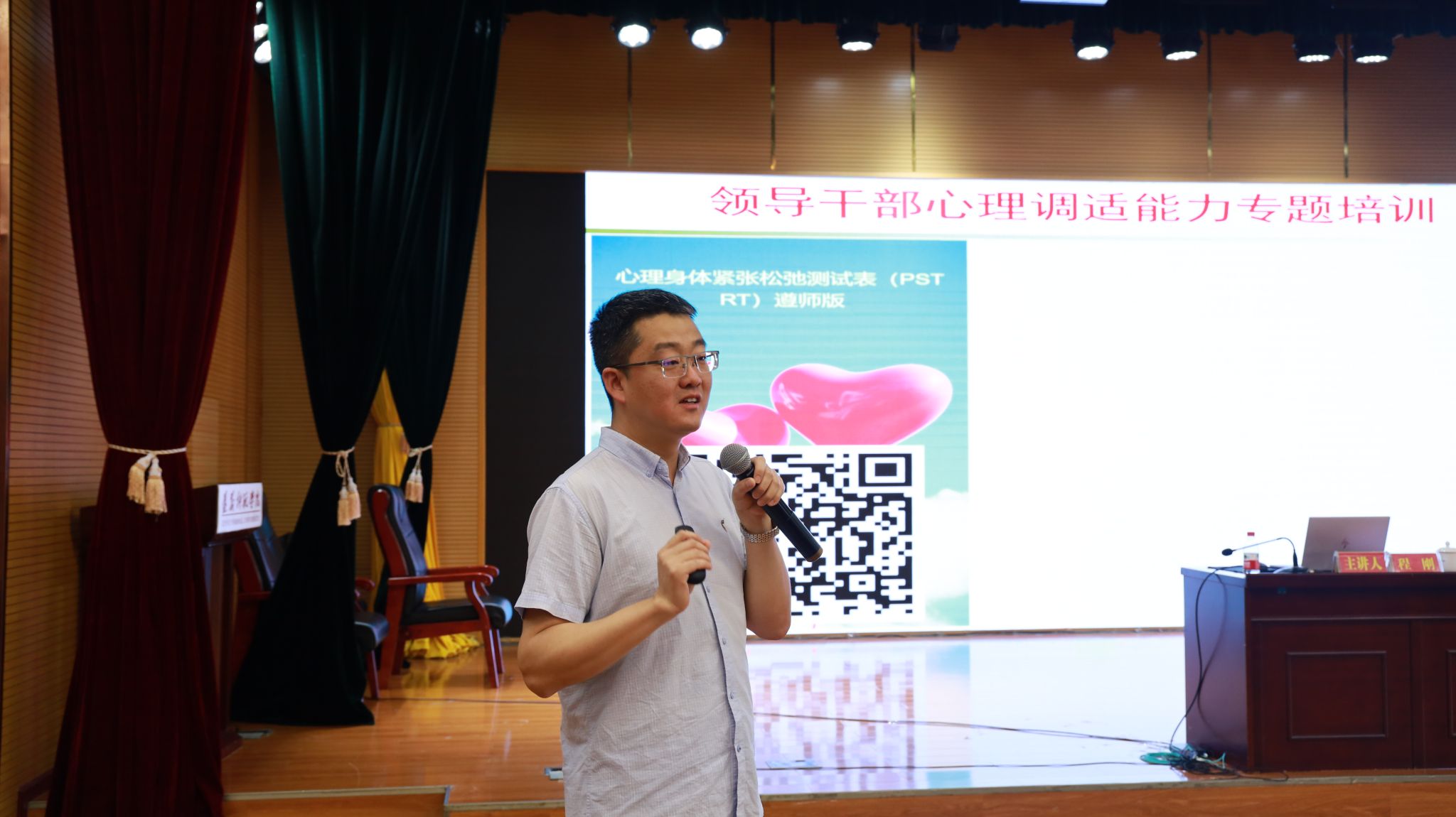 培训邀请到贵州师范大学心理学院教授、应用心理学系主任、贵州省心理学会秘书长程刚授课。程刚从自我觉知、自我调节两个角度出发,用生动的案例、有趣的互动,为全校处科级干部作了一次视野开阔、深入浅出的专题培训。