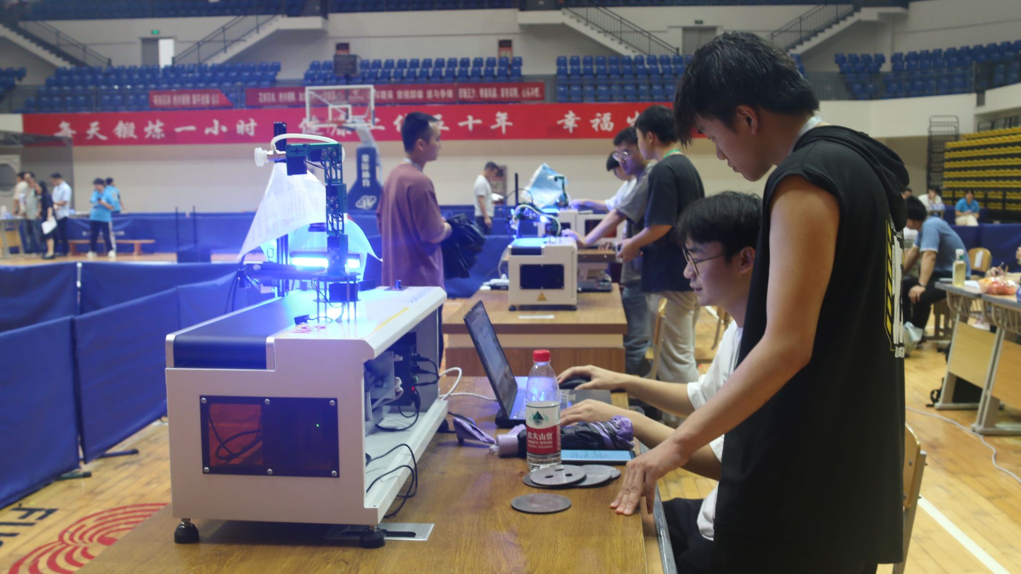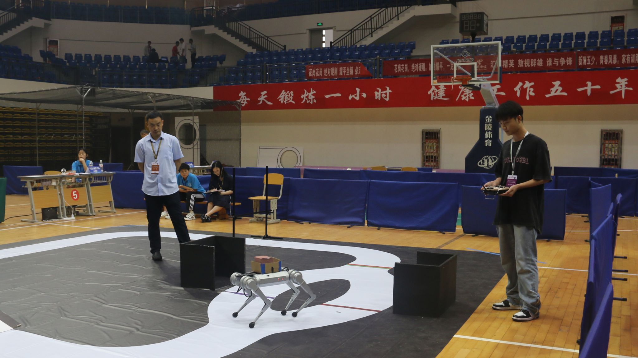 比赛中,来自全省36所高校的589支团队的1052名选手展开了激烈的比拼,各式各样的机器人在赛场上跳舞、踢球、巡航、射击……动作行云流水,赢得掌声阵阵。比赛结果将于近期公布。