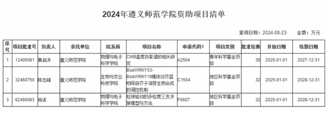 (科研处) 8月23日,2024年度国家自然科学基金集中接收申请项目评审结果公布,beat365亚洲版官网共获批3项,其中青年科学基金项目1项、地区基金项目2项。